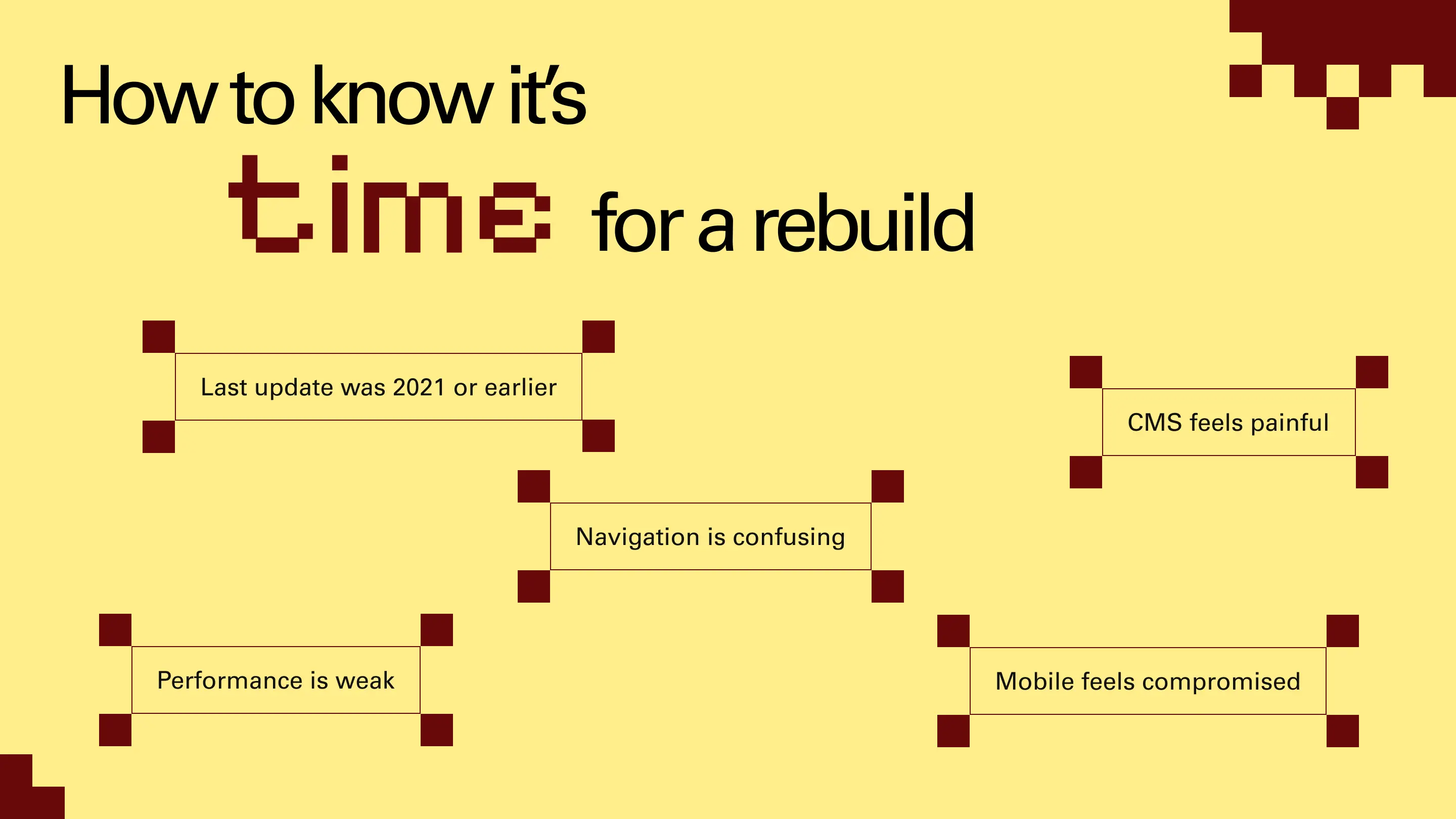 If your website was launched in 2020 or 2021, it is officially entering its “it’s not you, it’s the CMS” stage. Performance dips. UX feels dated. The brand evolves but the site stays stuck in time. You don’t need a teardown to know the foundations need love.